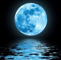 Imagine this, a beautiful blue moon reflected on the ocean.